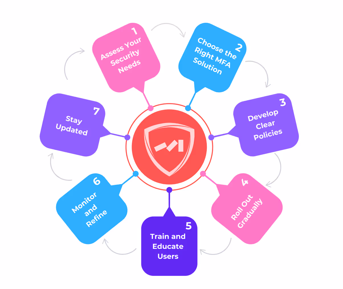 Deploying MFA involves careful planning, integration, and ongoing evaluation to ensure its effectiveness. Here’s a detailed step-by-step guide to help you implement multi-factor authentication within your organization.