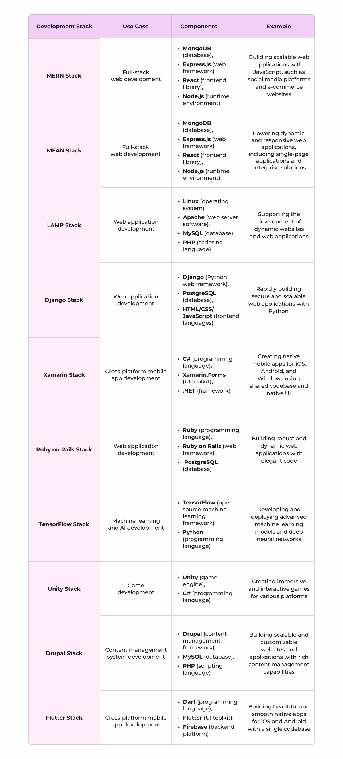 Explore these software development stacks to find the ideal one that aligns with your project requirements, development goals, and team expertise. Remember to consider factors such as community support, scalability, compatibility with your target platforms, and the importance of deploying your application to a production environment.