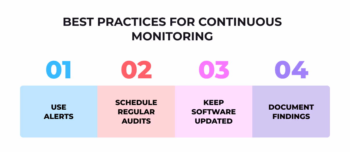 Regular monitoring ensures networks stay secure and optimized. Follow these best practices consistently: