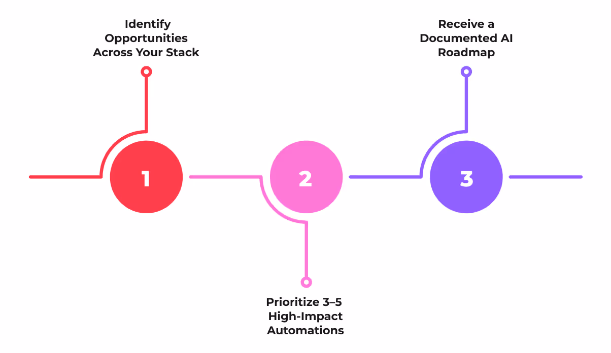 Next, we assess where automation will unlock the highest ROI and eliminate the most drag on your team.