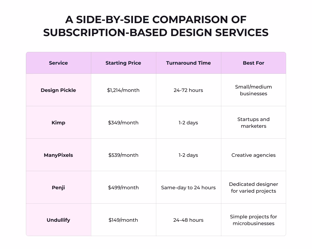 Here's a side-by-side comparison of 5 key subscription-based design services.