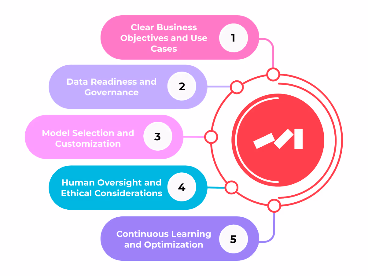 However, to truly realize these benefits, businesses must establish a framework for using the technology effectively. Below, we break down the five key pillars of a successful generative AI strategy.