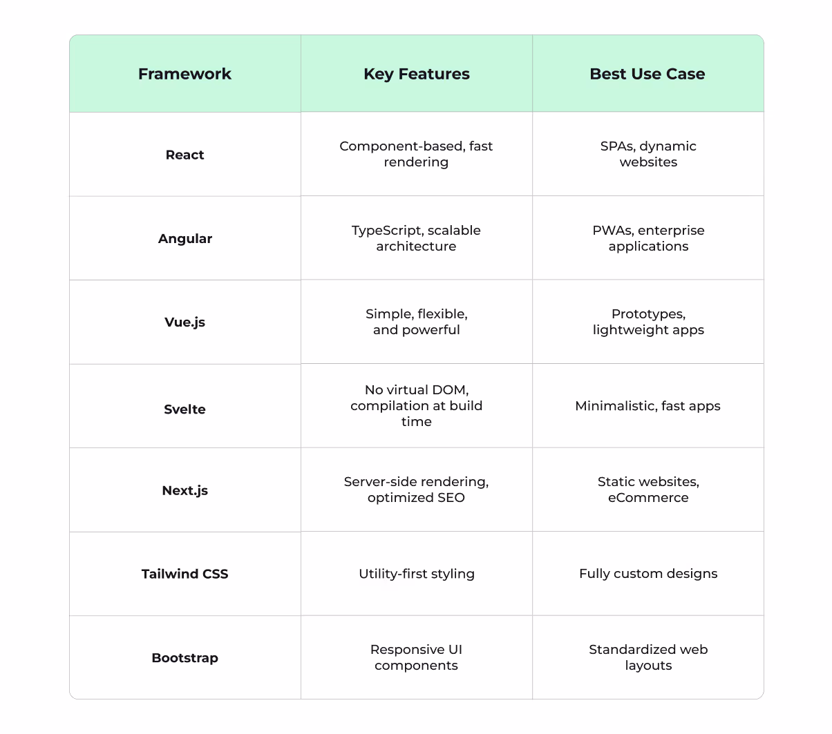 Each of these frameworks has built its reputation by consistently delivering exceptional user experiences and helping developers create efficient, scalable, and well-optimized web applications. Depending on your project’s needs, these tools can significantly enhance your workflow and final product.