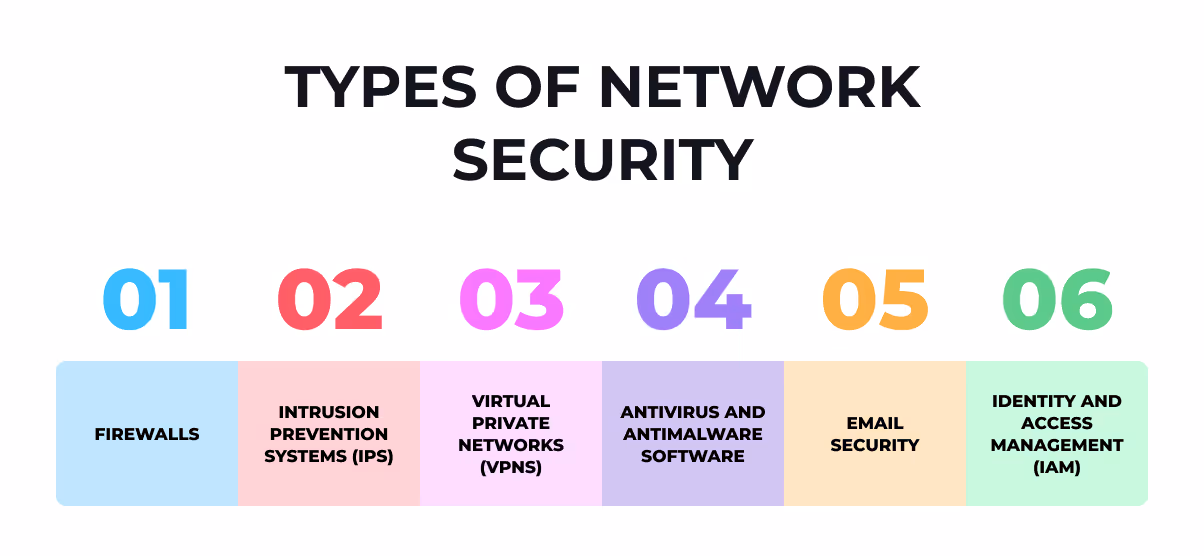 Network security is multifaceted, with different types working together for a comprehensive defense framework. Some of the most prominent types include: